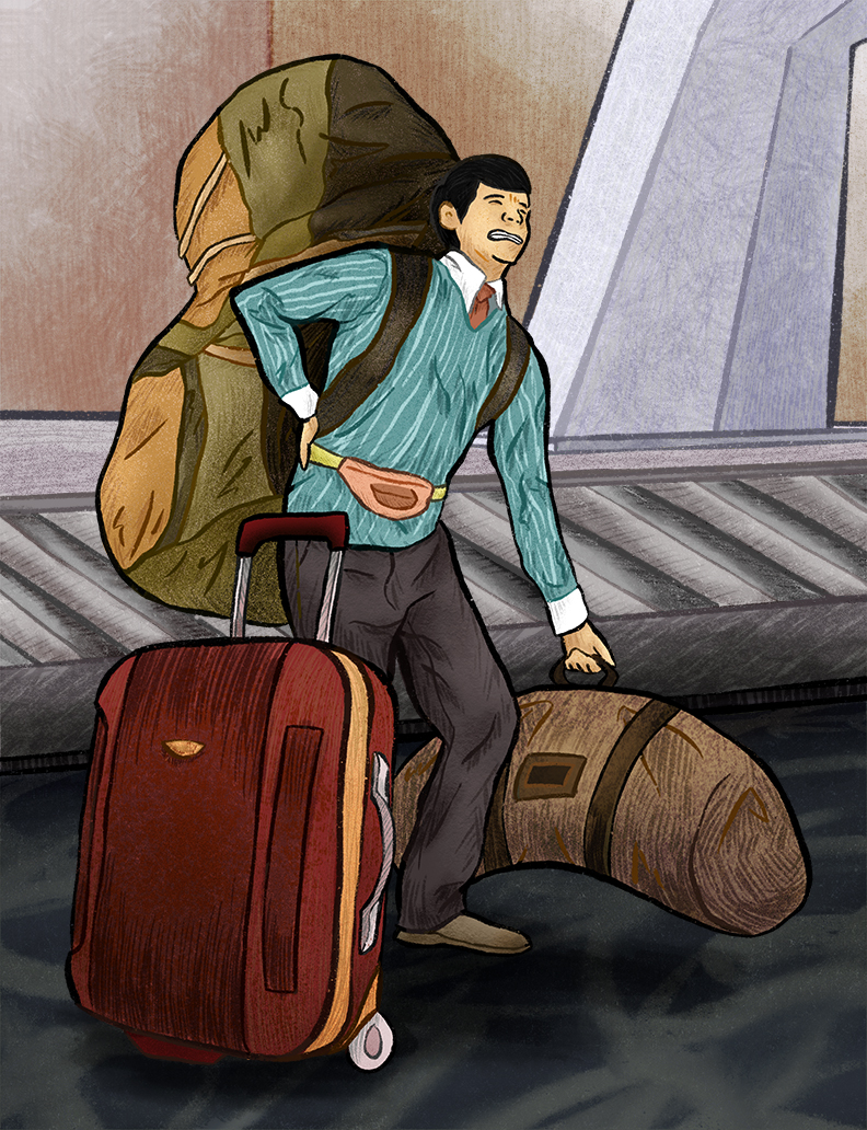 A full-page illustration and three spot illustrations designed for the article "Pack Your Suitcase Like A Pro".