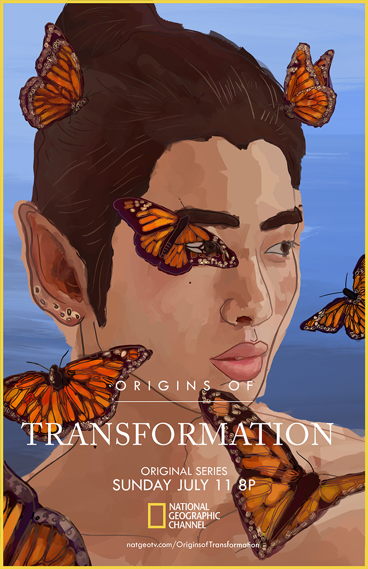 A mock-up poster created for National Geographic Channel’s series "Origins of…". This poster focused on the Origins of Transformation, and highlighted both metaphorical and physical transformation within the self.