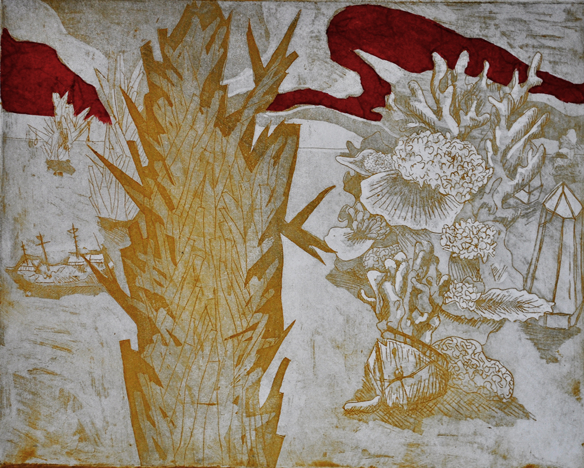 Intaglio print with chine-collé.